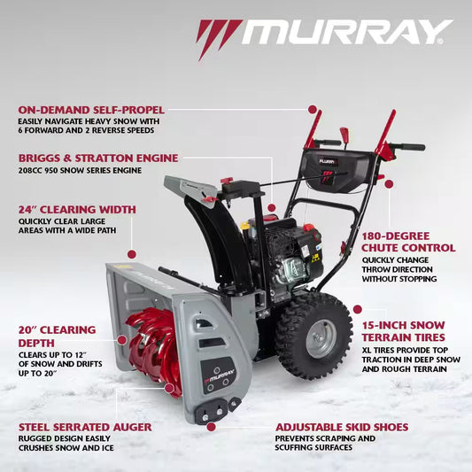 24 In. 208Cc Self-Propelled 2-Stage Gas Snow Blower with Electric Start